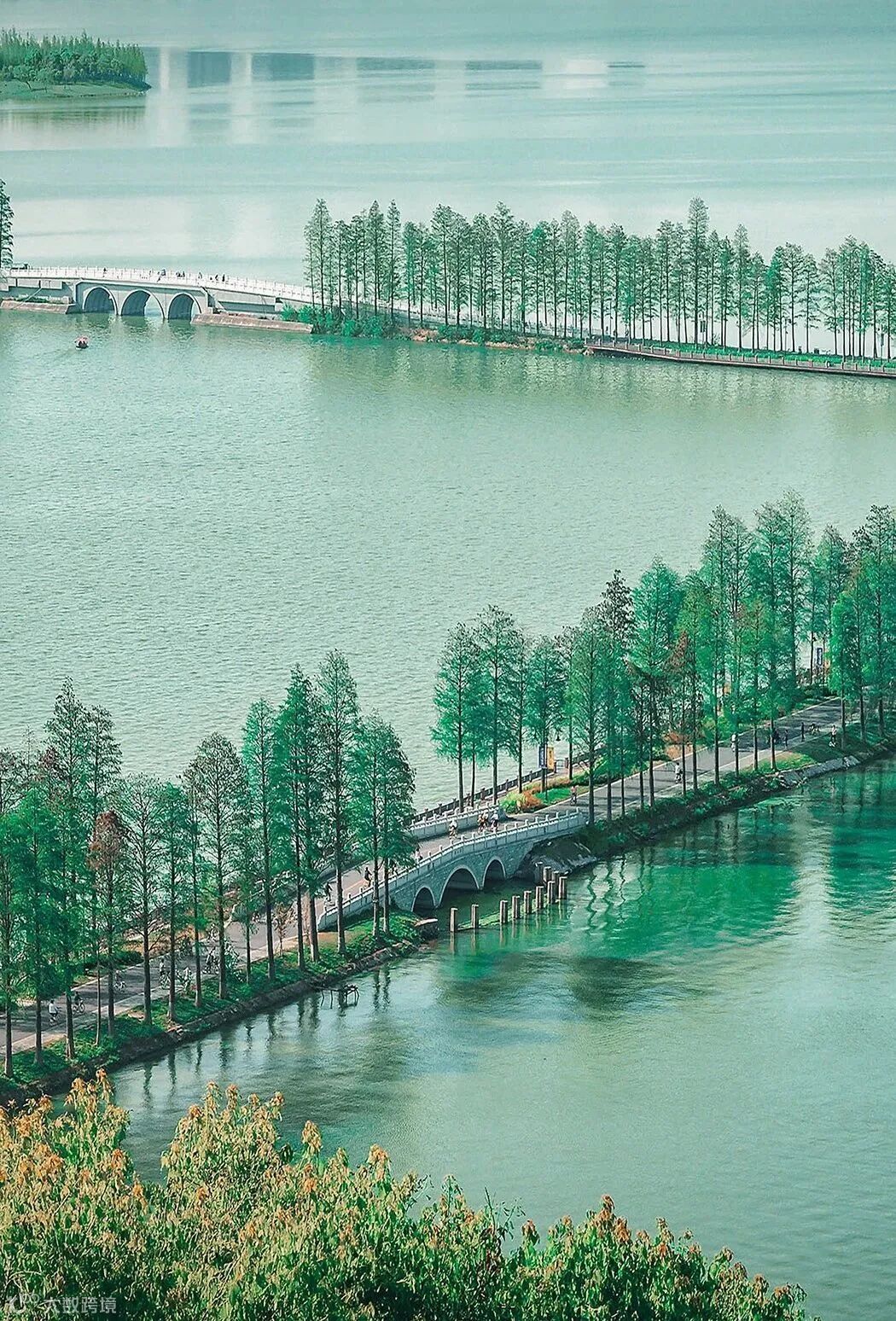 东湖绿道分为听涛道、湖中道、白马道、郊野道、森林道、磨山道、湖山道7段主题景观,充分依托东湖山、林、泽、园、岛、堤、田、湾8种自然风貌,二期54景命名大多取自《诗经》《楚辞》,诗与景融合,文化与自然相辅相成,还有国际范的公共艺术园,打造独特的自然生活空间。