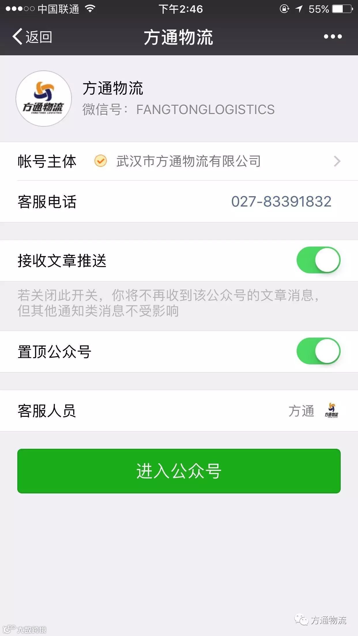 方通物流第一步:微信扫一扫二维码关注方通物流微信公众平台。(下图二维码)