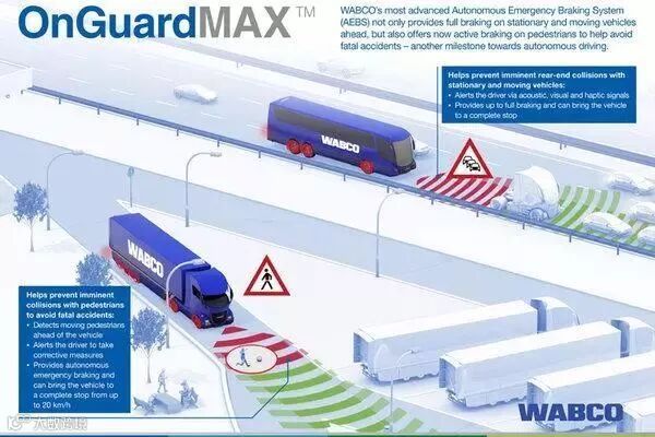 “预测性紧急制动:通过在货车前端同时安装多功能摄像头和雷达传感器,为驾驶员提供辅助。