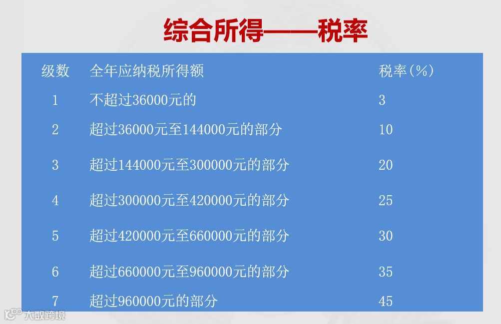 (一)综合所得,适用百分之三至百分之四十五的超额累进税率(税率表附后)