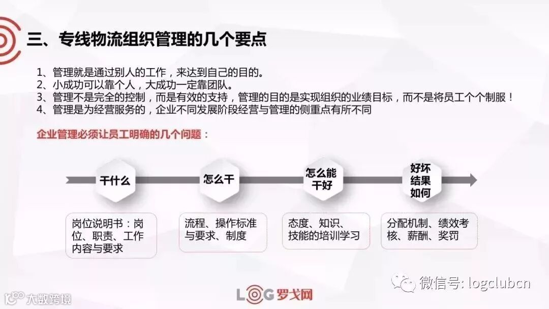 2、组织管理是一切管理活动的开始和基础,组织建设是企业的一种长期的管理行为,经常被专线物流所忽视,这也是造成老板常常充当“救火”队员和和顾此失彼手忙脚乱的根源。