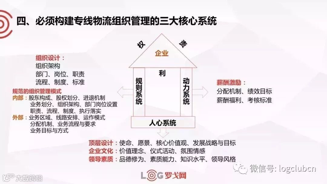 要想解决这些问题,对于专线物流来说,就要构建组织管理的三大系统: