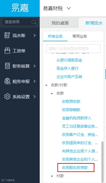 (1)增加新业务类型(收到股东投资款)