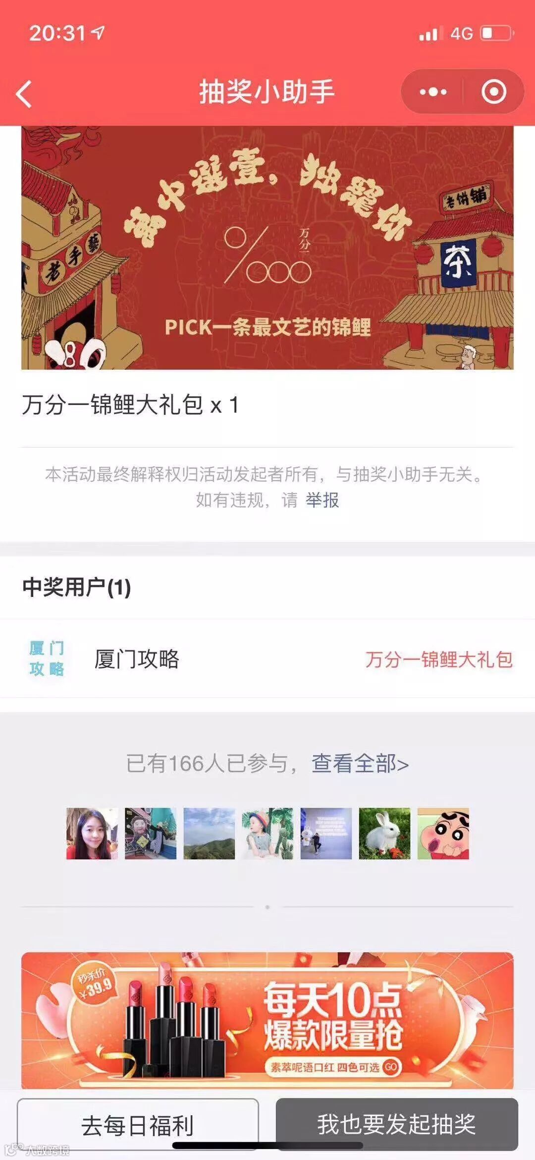 抽取锦鲤一名