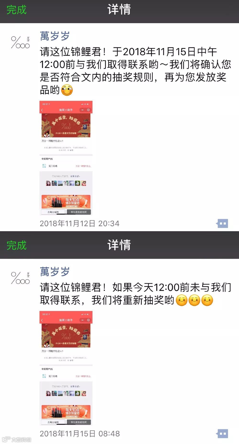 自动弹出的抽奖公告及获奖公告