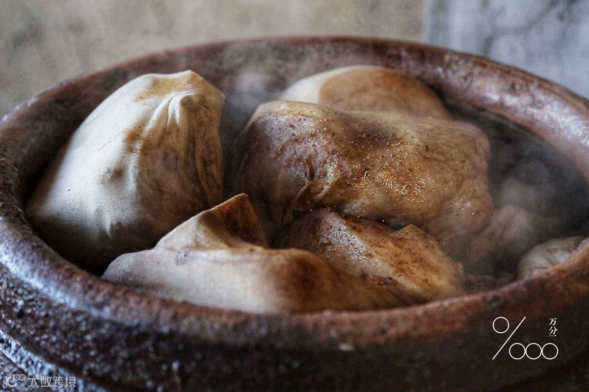 依着层次把封肉包,一层一层叠放进瓮中,再分次倒入五斤麦芽和熬制好的大骨汤,并用面糊密封住瓮口,合上瓮盖,汤水把佐料的味道熬出来,而封布又可以包住香料的味道,让封肉充分吸收佐料的味道。