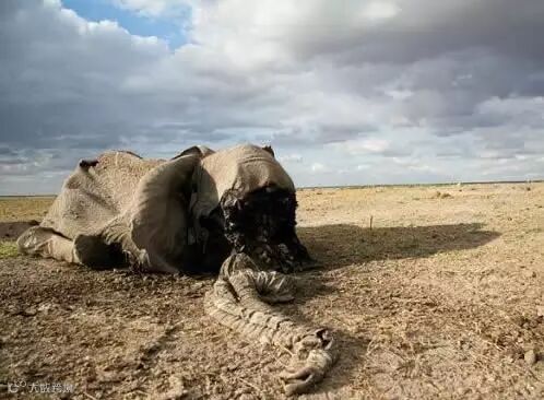 曾经茂盛的草原因为长期没有降雨而干枯,找不到食物和水的动物们只有在绝望和恐惧中死掉。