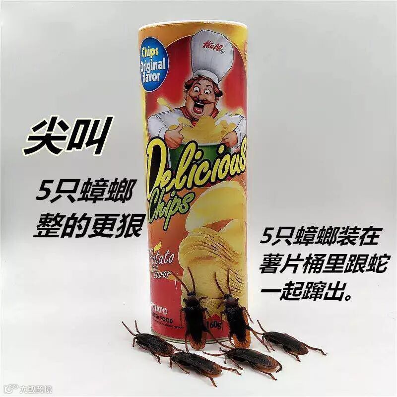 自己被店家准备的惊喜蟑螂吓到