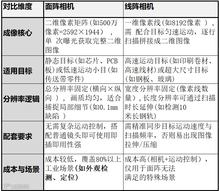 三、面阵相机和线阵相机的区别