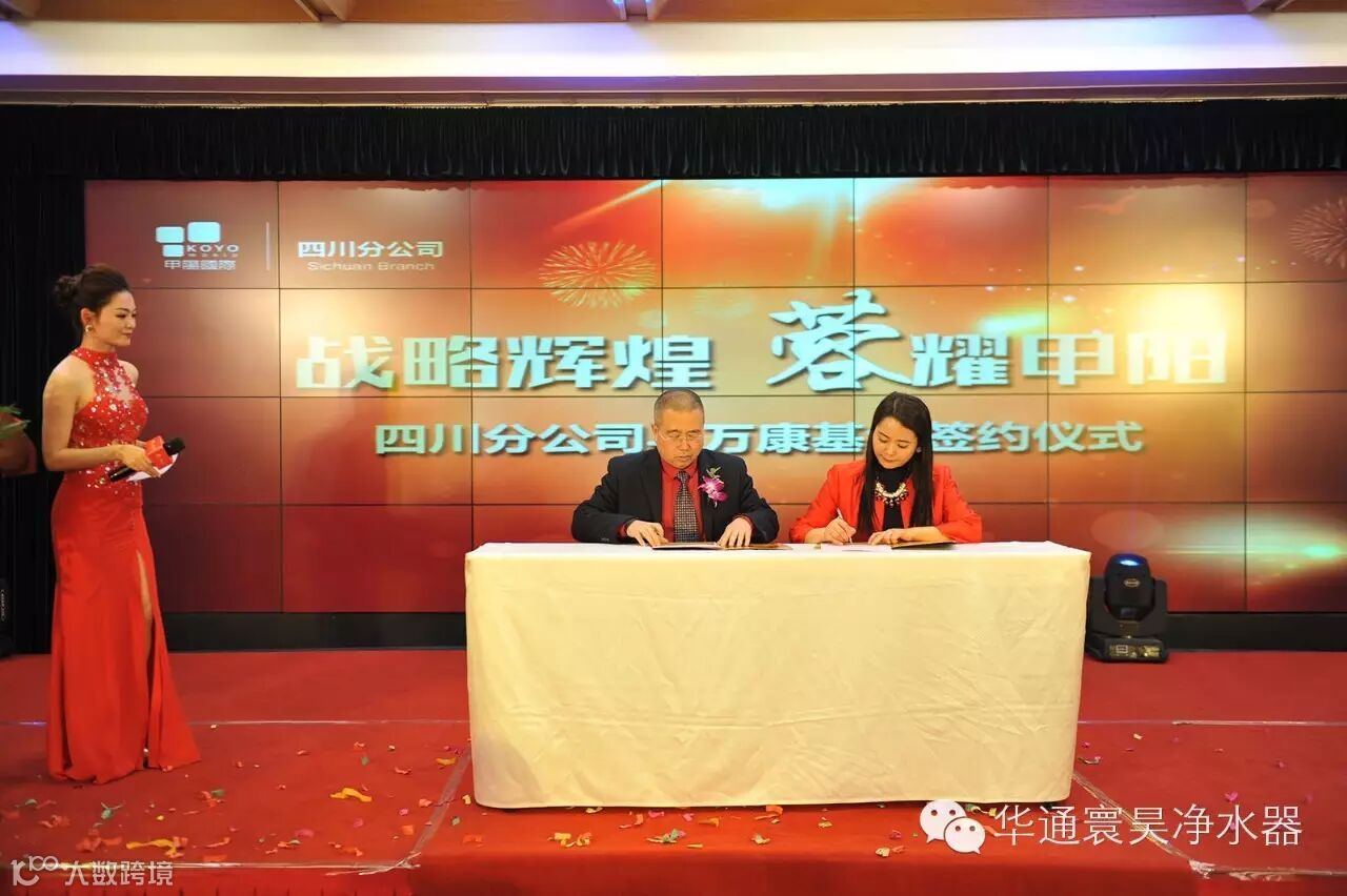 庆典仪式上,甲阳国际集团与深圳前海万康股权投资基金有限公司签署了战略合作协议。深圳前海万康股权投资基金有限公司董事长万世平表示,与甲阳国际集团牵手,旨在强强合作,互通互补,形成更大的平台,让广大客户朋友享受集健康、环保、投资、学习于一体的全方位服务,实现身体健康、财富自由的美好人生。