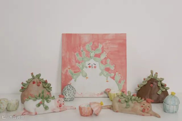 在自己的毕业设计上延伸后,她的作品里多了一份轻松惬意:像猫一样慵懒摊着的小人、对你撅着嘴要亲亲的娃娃、开着小花儿的蜡烛……