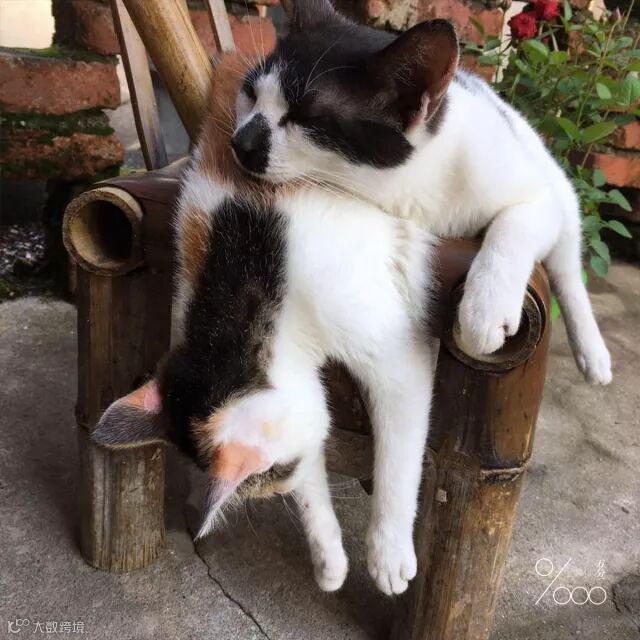 “在工作室工作,腿上躺一只、桌上躺一只、旁边躺椅上两只。每次一停一摸,好~这一天就过去了不用干活了。”