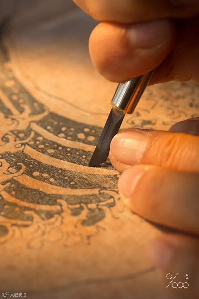 雕刻《神奈川冲浪里》的所有木版大约需要3周左右的时间。从事这项精致细密工作的雕版师那精确灵巧的刀工技法,令人拍案叫绝。