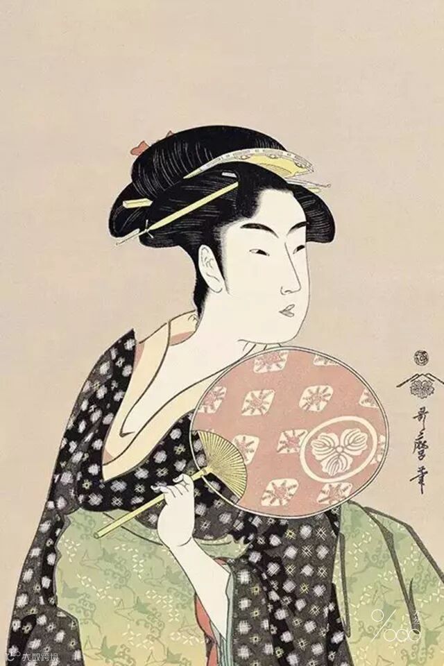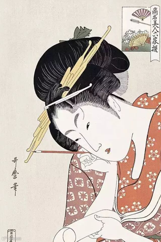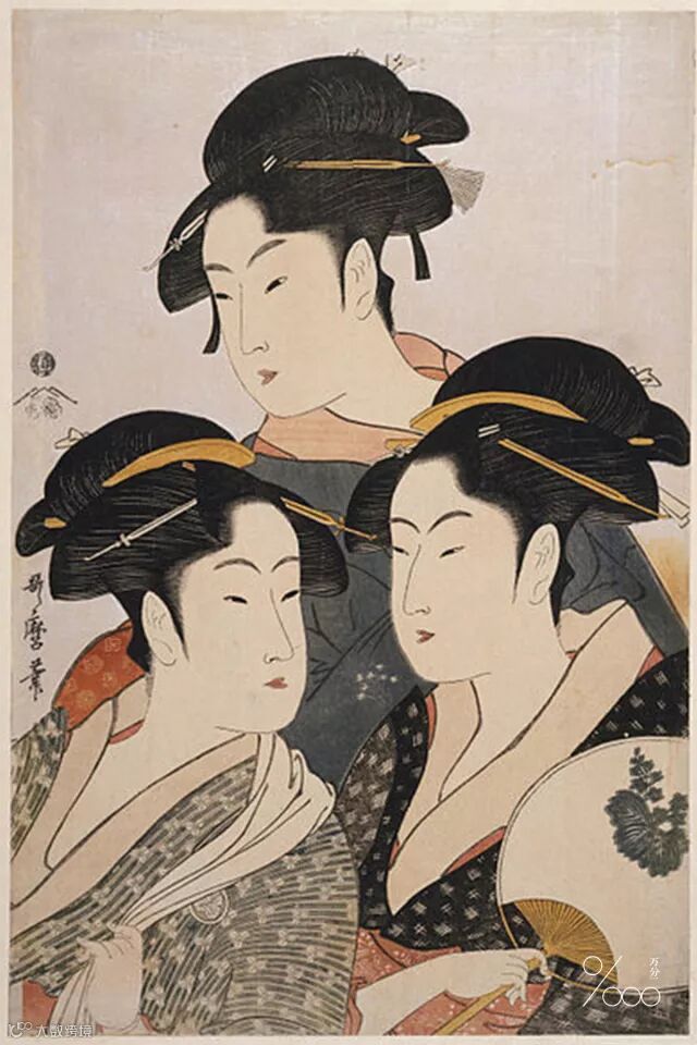 ▲另一位浮世绘代表大师喜多川歌麿的作品。他是“大首绘”(有脸部特写的半身胸像)的创始人。
