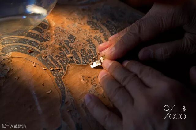 首先用马尾毛做的刷子蘸水将木版刷一遍,对照样本的颜色调配颜料,将一定量的颜料倒在木版上后用刷子将颜料仔细涂在木版上,使之与木版融合。