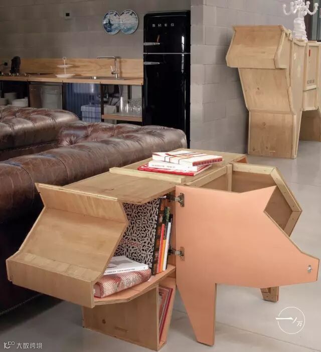 ▲ 动物储物箱 - 设计师用牛、猪等一系列动物形象制作了一款储物柜,柜子的材料为包装箱,算是废物利用,也体现了Seletti的环保理念。柜子内部全空,储存空间大,不同大小的格子也适合存储不同物品