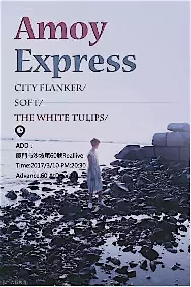 City Flanker: 极致致幻的电子律动,一支来自绍兴的氛围自赏乐队。迷恋着根源自赏的吉他噪音墙,善于用环绕的旋律,来回穿梭。