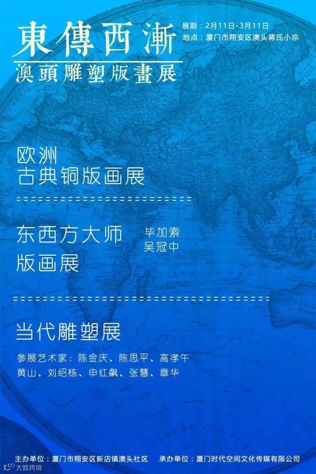 继2016年“聚焦特色小镇——翔安澳头举办国际化艺术研讨会” 后,2017年时代空间再次为澳头注入艺术力。2月11日-3月11日,由时代空间策划实施的“东传西渐—澳头雕塑版画展” 将于澳头举办,该展览用“艺术+”的方式,助力厦门全域旅游融合,塑造澳头艺术小镇旅游品牌。东西方艺术作品在澳头古厝中展出,现代与传统、东方与西方、建筑与艺术的交融,彰显了澳头正着力打造国际性艺术小镇。