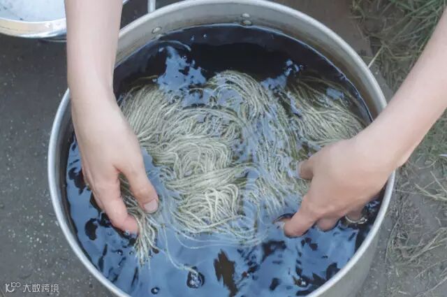 ▲艾希莉为羊毛线染色