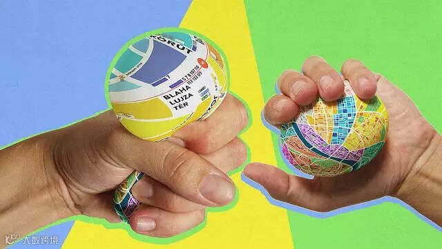 城市地图被印刷在弹性非常好的充气橡胶球表面,