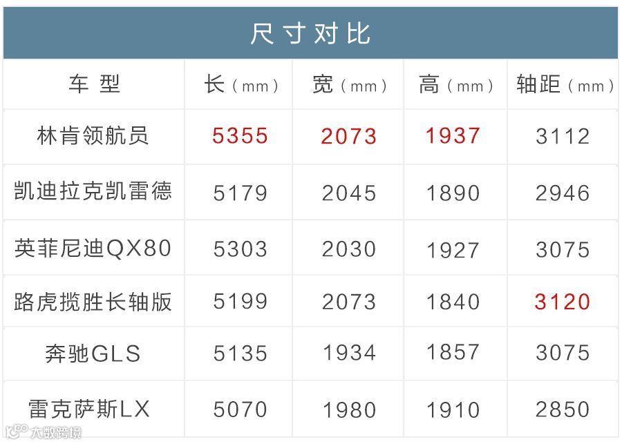 全新林肯领航员的“大”,毫无疑问首先体现在外形上:尺寸大。全尺寸7座豪华SUV的引领者并非浪得虚名,在同级别的竞争车型里,全新林肯领航员可谓是一览众山小,车身尺寸有着压倒性的优势。