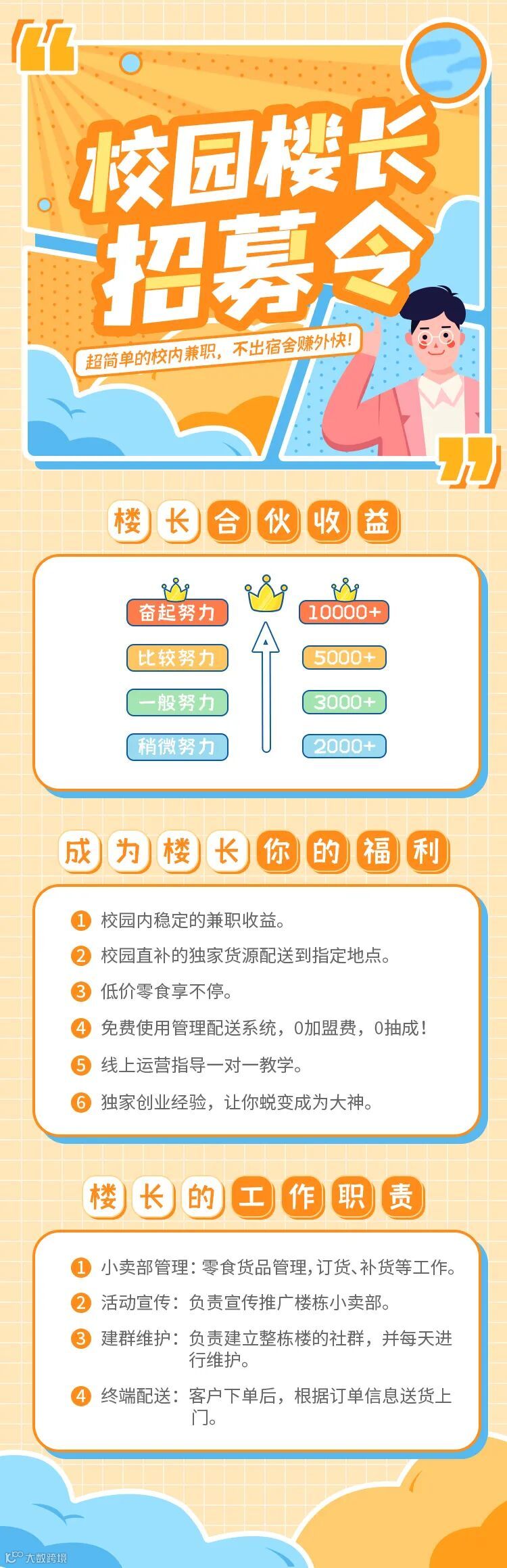 零点校园“宿舍网店”项目正式招募楼长,无需囤货、0成本起步,只需一部手机,即可开启你的校园创业之路!