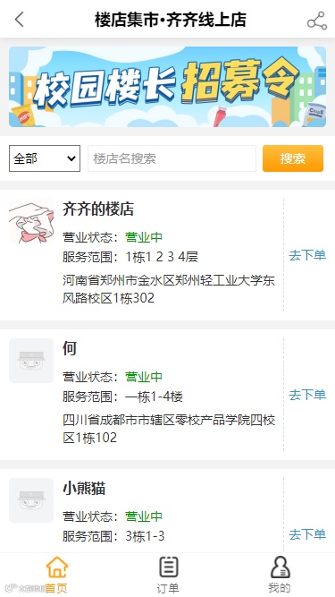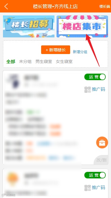 【操作步骤】:分销楼长-楼店集市-扫码进入