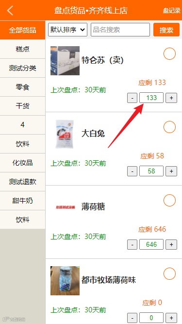 盘点商品时,新增输入框