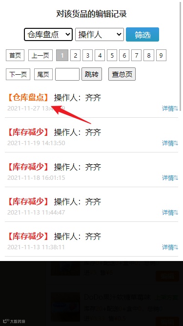 【操作步骤】:仓库货品-商品编辑-编辑记录-选择记录类型
