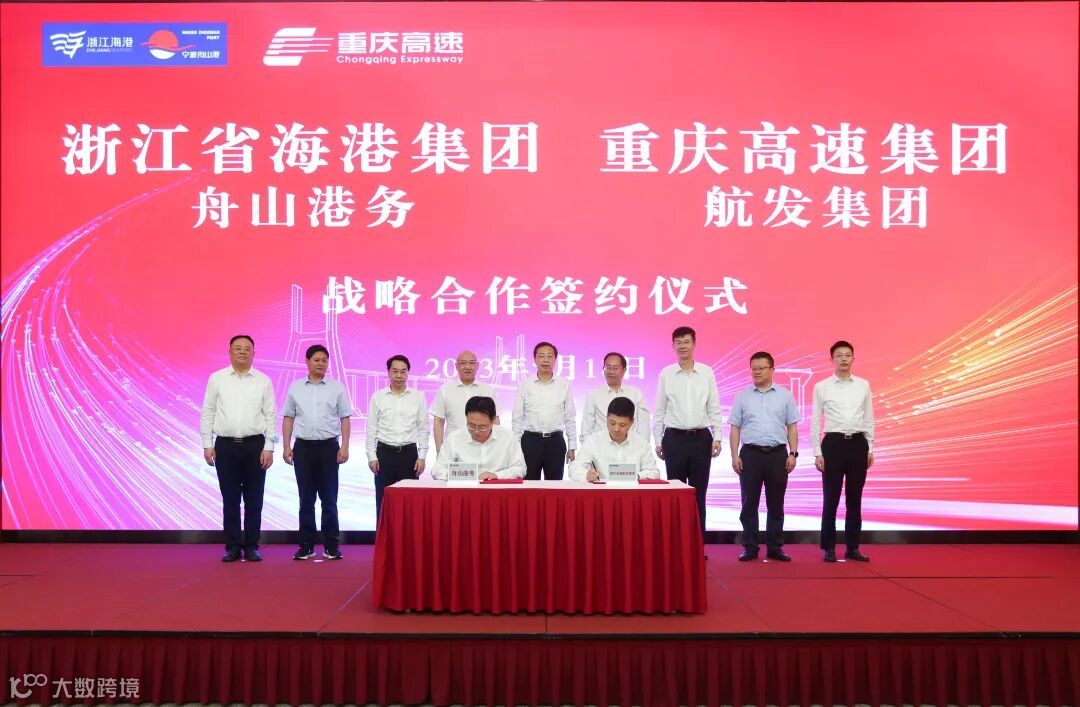 5月18日,在第五届中国西部国际投资贸易洽谈会期间,浙江省海港集团、宁波舟山港集团下属宁波舟山港舟山港务有限公司、太仓万方国际码头有限公司与重庆高速集团下属重庆航运建设发展(集团)有限公司签订战略合作协议。