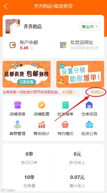 配置入口:批发店-供货区-我的供货区