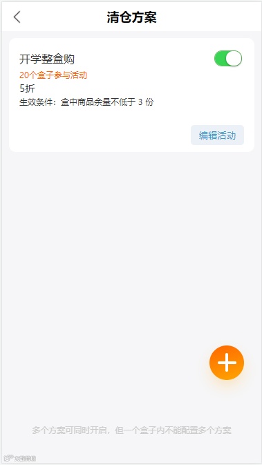 配置入口:营销活动-整盒清仓-新增清仓方案