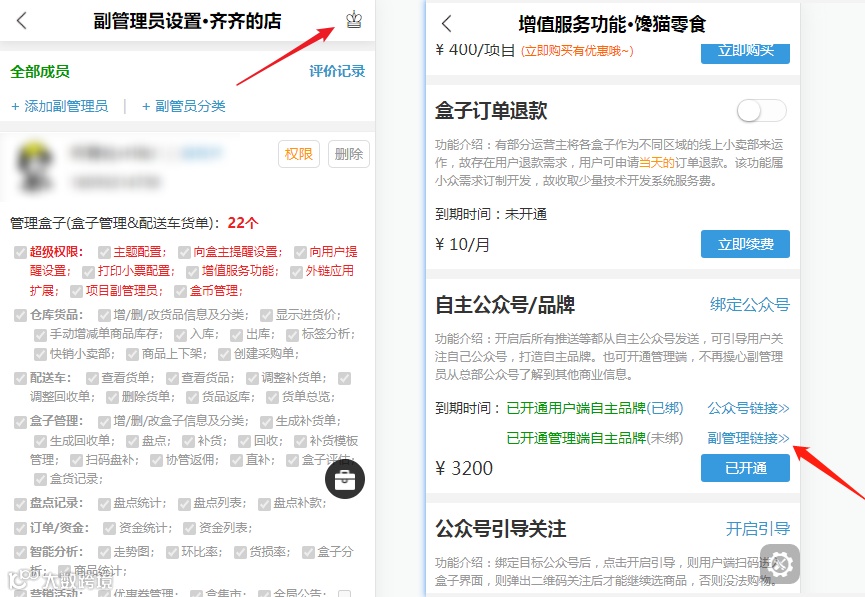 盒子项目增值服务和副管理设置页面的副管理链接替换为公用的链接,且公用链接内容展示权限优化。