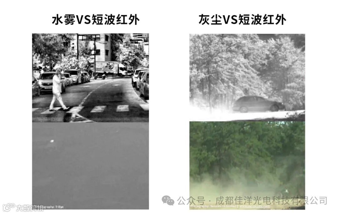 短波红外用于细小水滴的雾气和扬尘的透射成像效果较好。