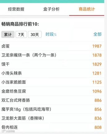 起初零食种类选择是根据零食盒子系统里面的畅销排行来进货的。