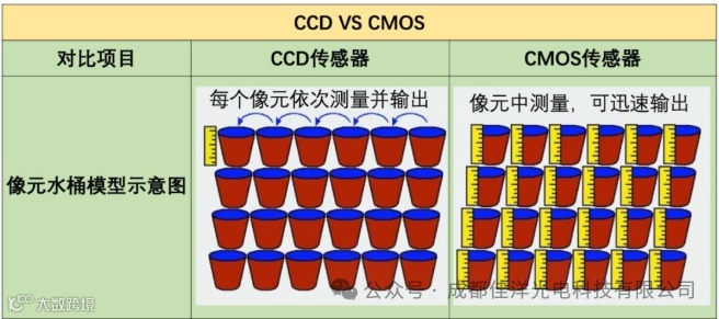CMOS:每个像素点都有独立的放大器和模数转换器,光信号转化为电荷后,可直接在像素点附近进行放大和数字化处理。