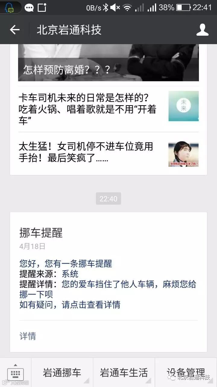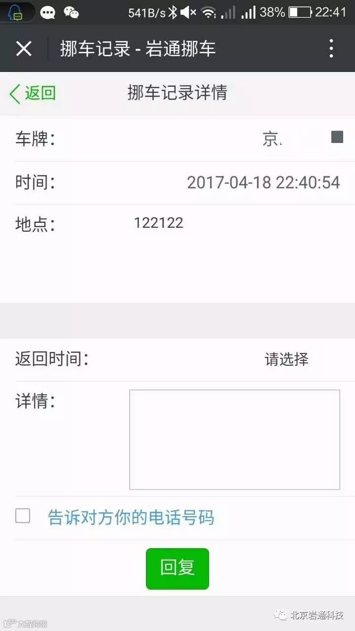 岩通挪车点击详情还增加了“回复功能”
