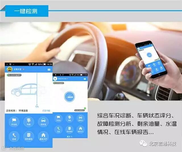 开启女司机的智能汽车生活,很简单,岩通科技智能车管家把爱车装进你的手机,时时掌控爱车状态,找车位?找加油站?车辆检测?车动态?足迹?违章查询?导航?用车报告?