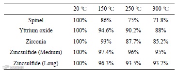 表 3 不同温度下窗口透过率衰减情况