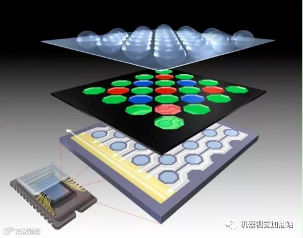 彩色相机芯片传感器和黑白相机芯片传感器在结构上没有太大的区别,而黑白相机一般是在单色像素上加上滤色片,只允许一种颜色的光通过光感芯片, 从而得到“黑白”的颜色。在彩色相机中,需要算法处理多通道的颜色分量,使得彩色图像中像素边缘精度丢失,所以彩色相机的的实际分辨率要比黑白相机的分辨率要低。