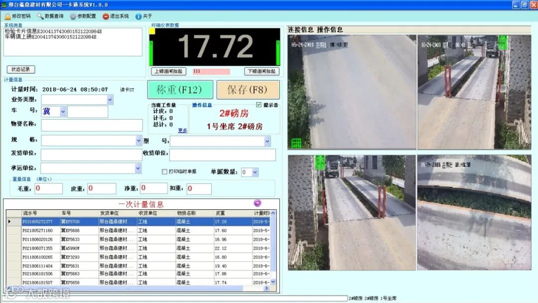 基于大数据智能运算模型实现砂石骨料筒仓自助放料,满足不同车型车辆的自动装车,集成生产实时监控系统、产销系统、一卡通计量系统进行数据信息交互,通过车辆卡片身份自动识别、销售物料的自动辨识,控制自动下料为手段,完成汽运的自动下料与智能装载,减少人员成本、提高物流效率。