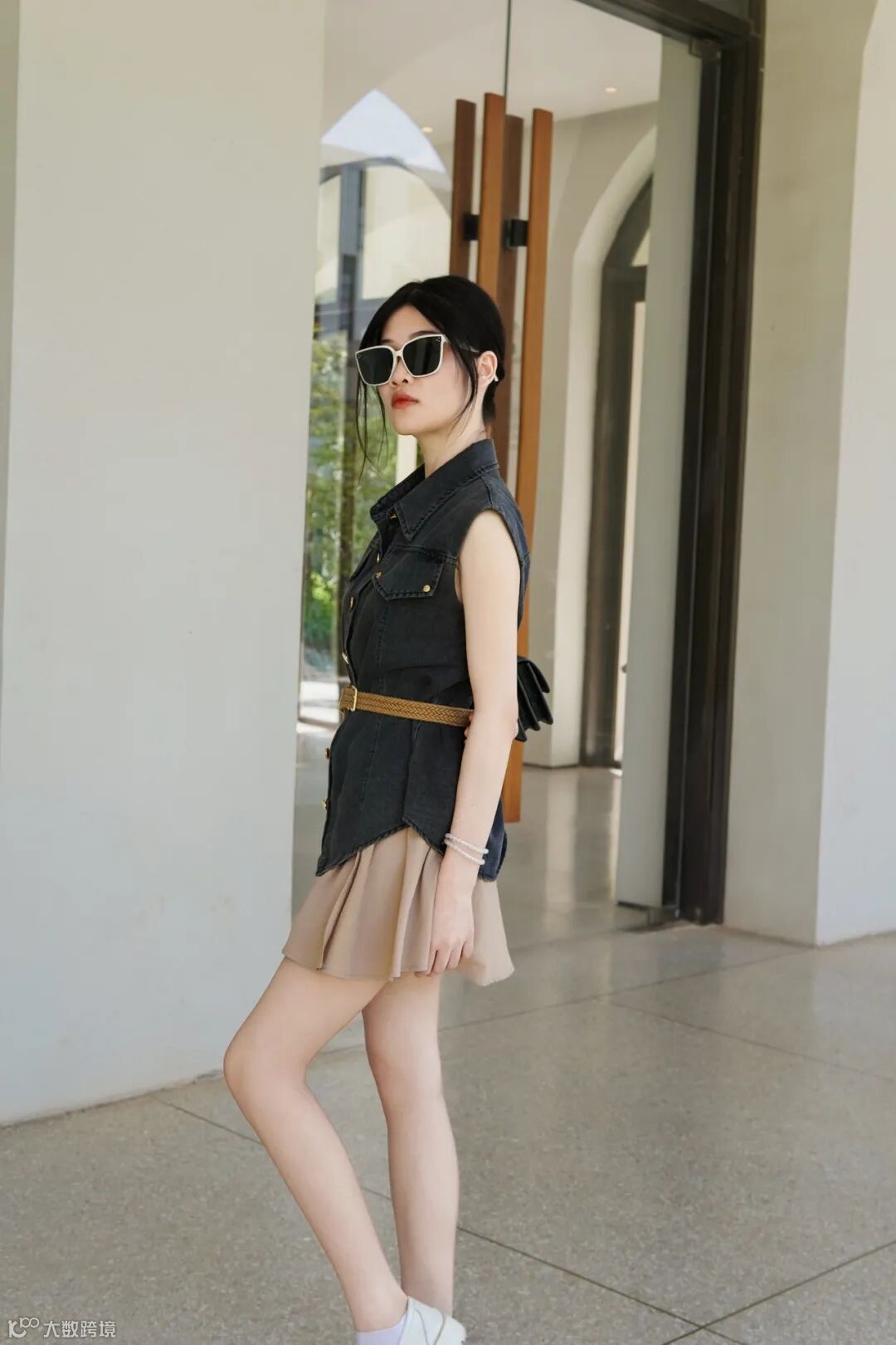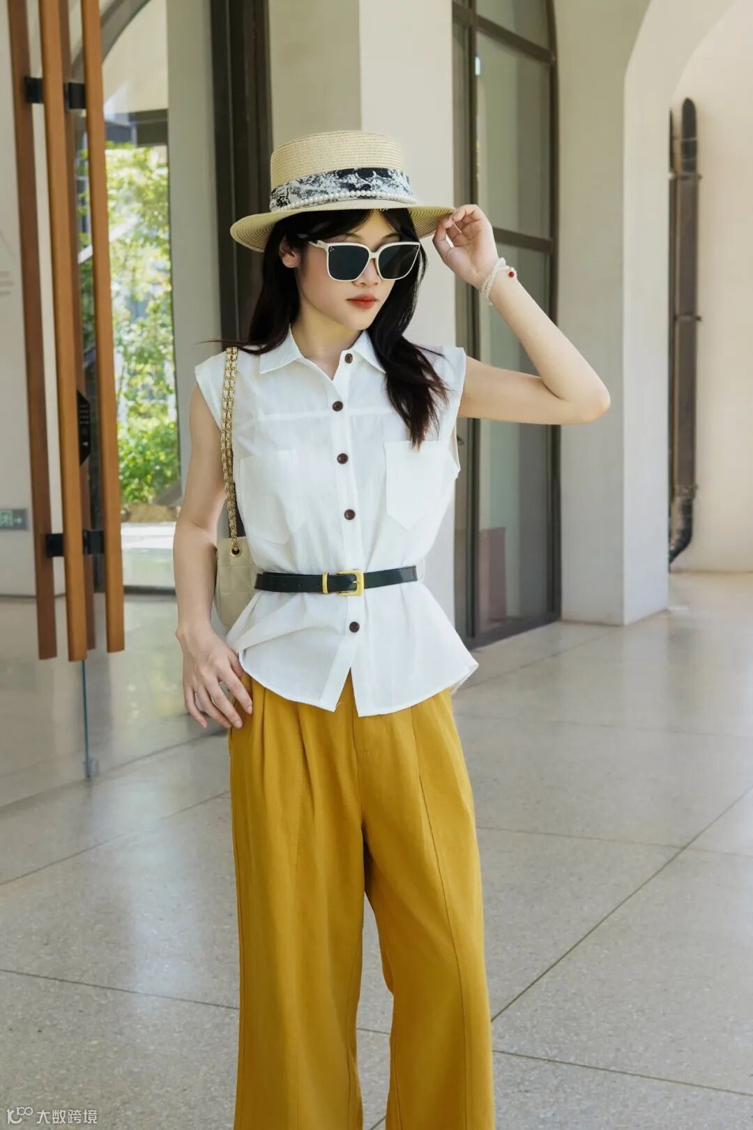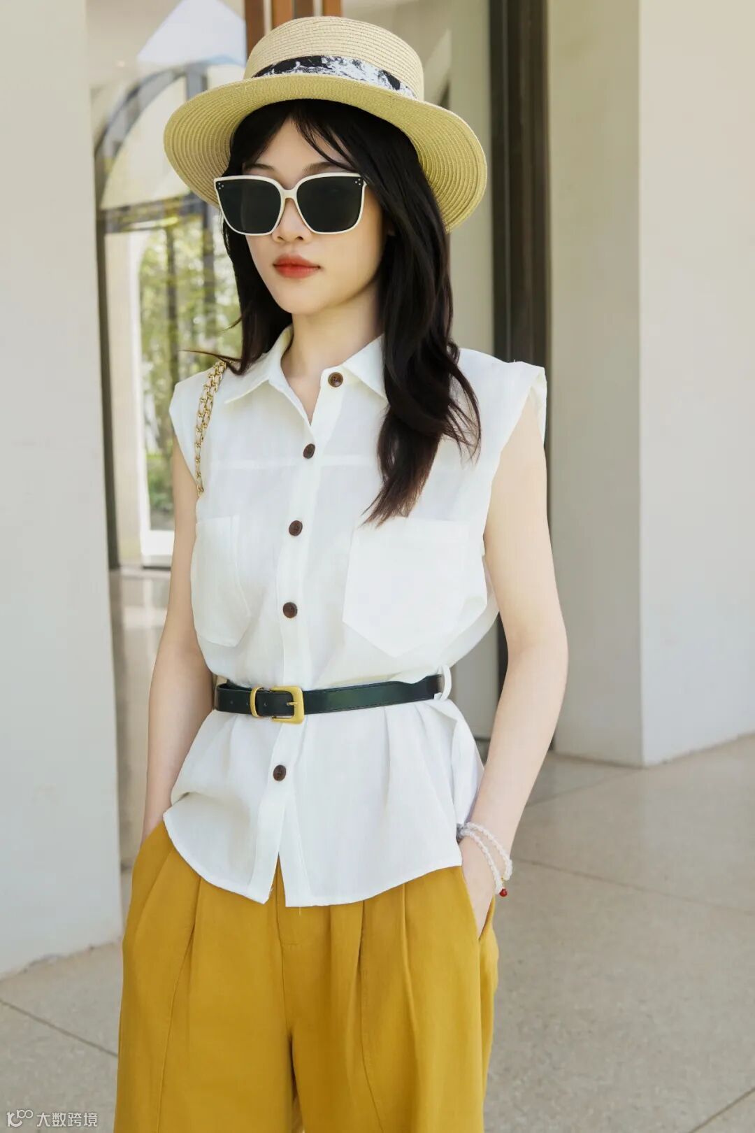 复古无袖衫搭皮带