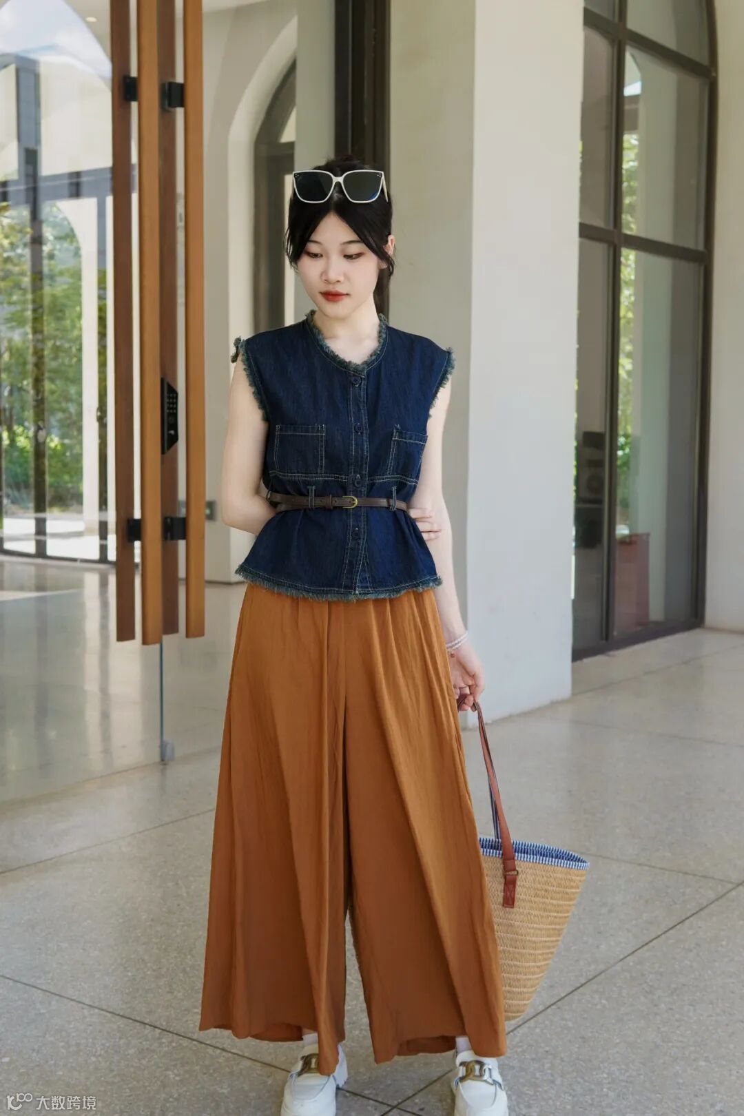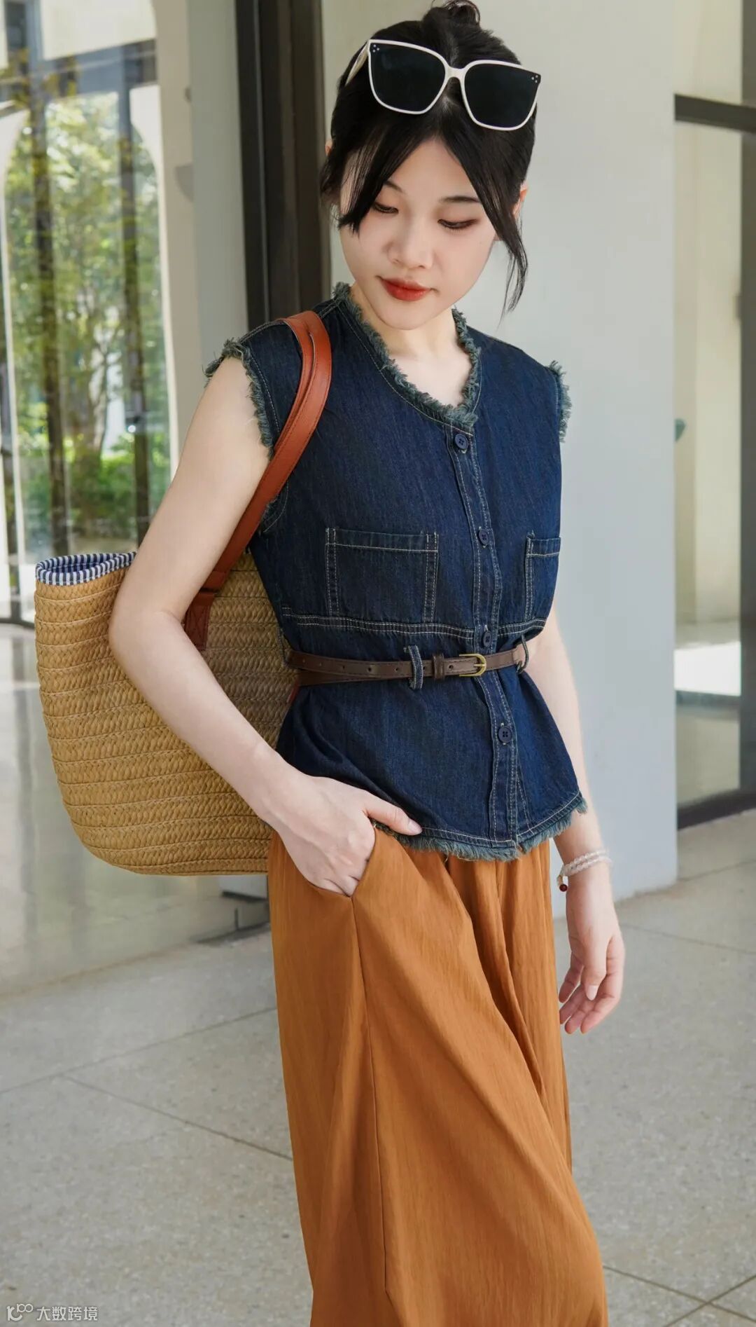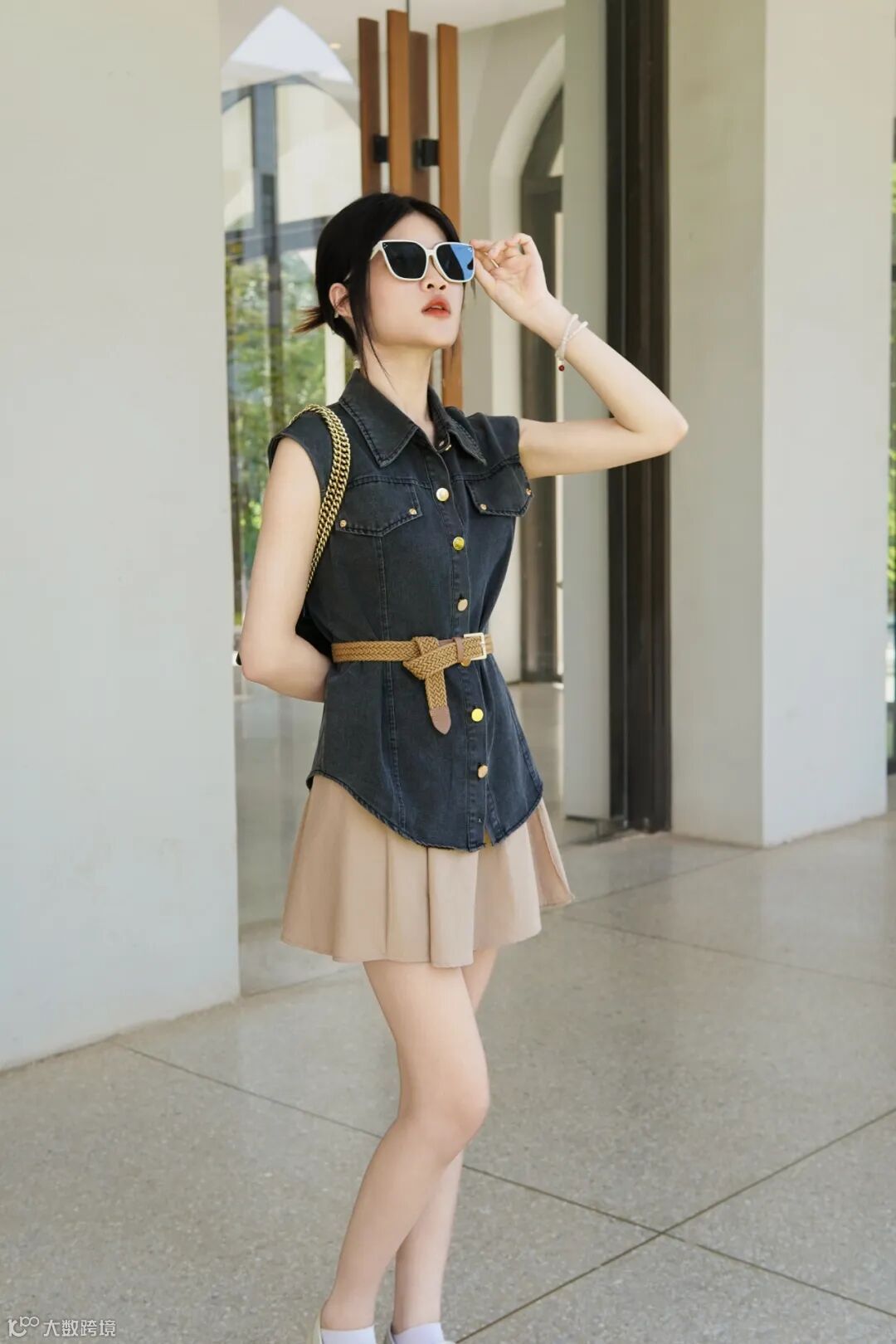 复古无袖衫搭皮带