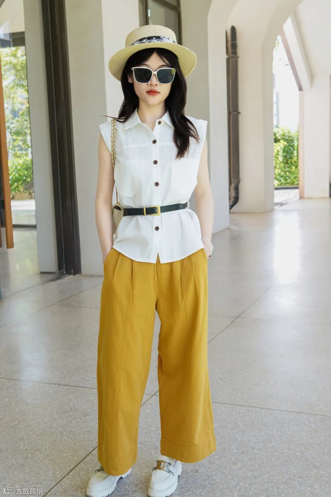姜黄色阔腿裤,很亮眼!