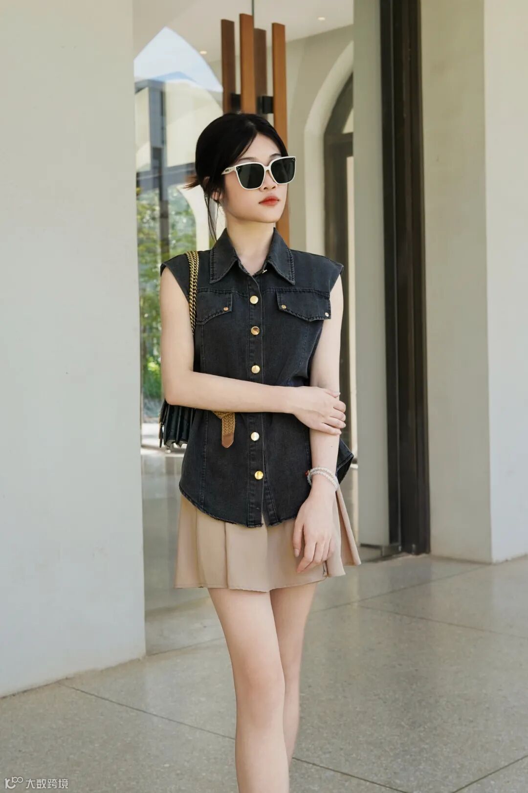 法式无袖牛仔衫