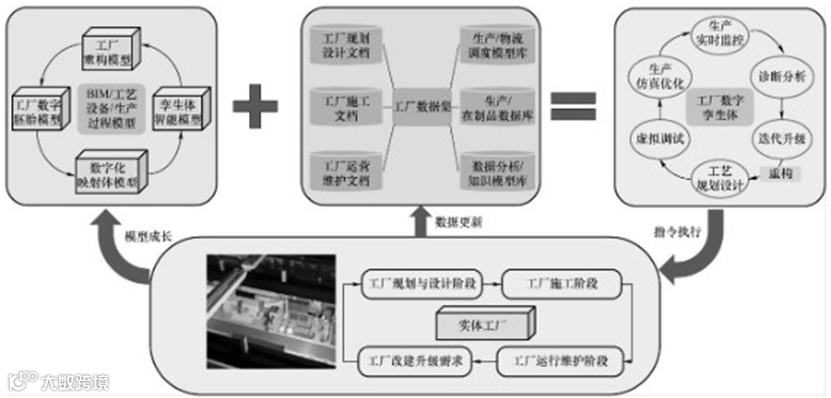 参照产品全生命周期的概念定义,一个生产系统的全生命周期也可以分为规划与设计阶段、施工建造阶段、运营与维护阶段以及报废与改建阶段。生产系统的全生命周期每个阶段的目标不同,对信息的需求不同,同时信息也明显具有不同的特征。在生产系统全生命周期中,所需承载的信息不断累积并由前一个阶段传递到下一个阶段,而且需要承载面向产品制造过程多领域、全要素、全业务流程的融合信息,这就需要面向生产系统全生命周期的数字孪生技术来满足信息流的流动性、集成性和可扩充性需求。