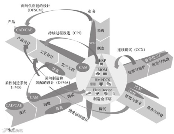 图2展示了产品生命周期的典型阶段,一个产品在其生命周期内的演化是一个分层次、分阶段,且相互交互协同的立体反馈运行模型。