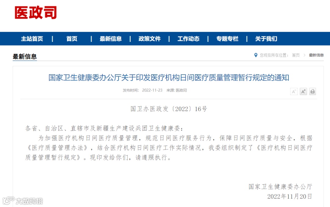 《医疗机构日间医疗质量管理暂行规定》原文