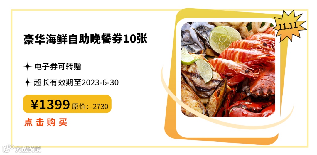 ✦1399元豪华海鲜自助晚餐券10张
