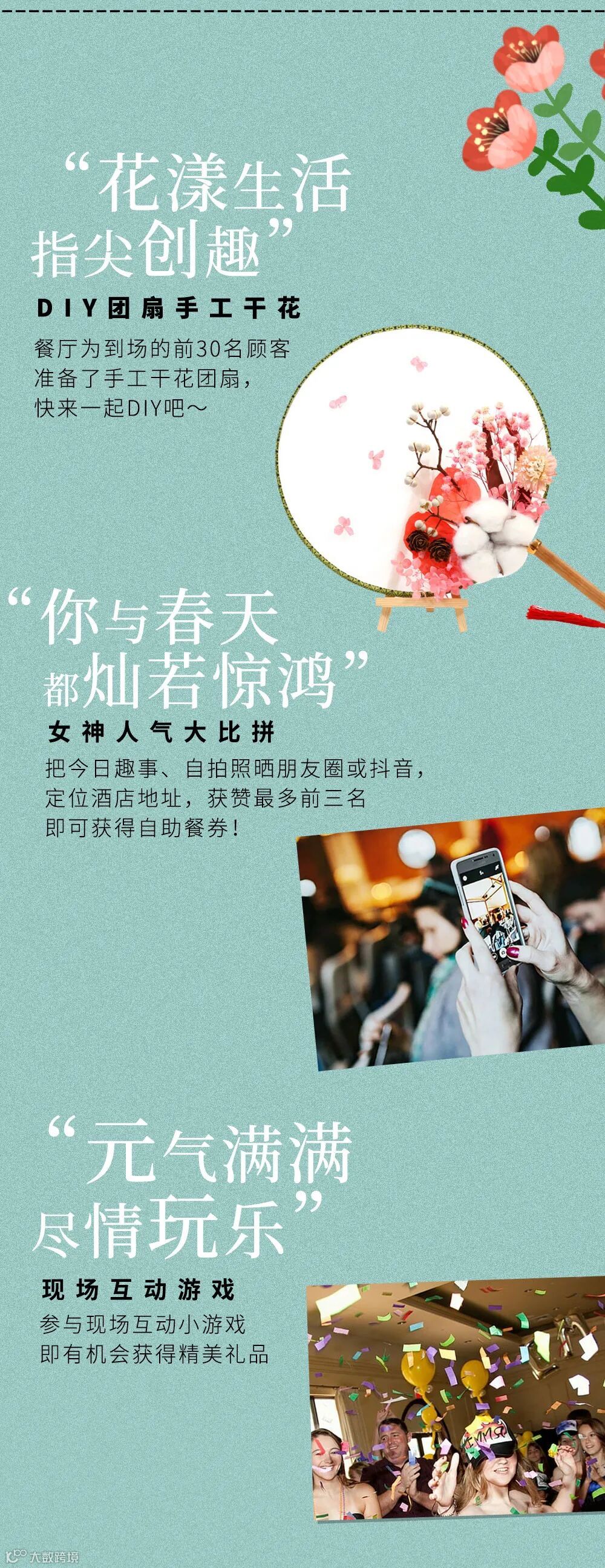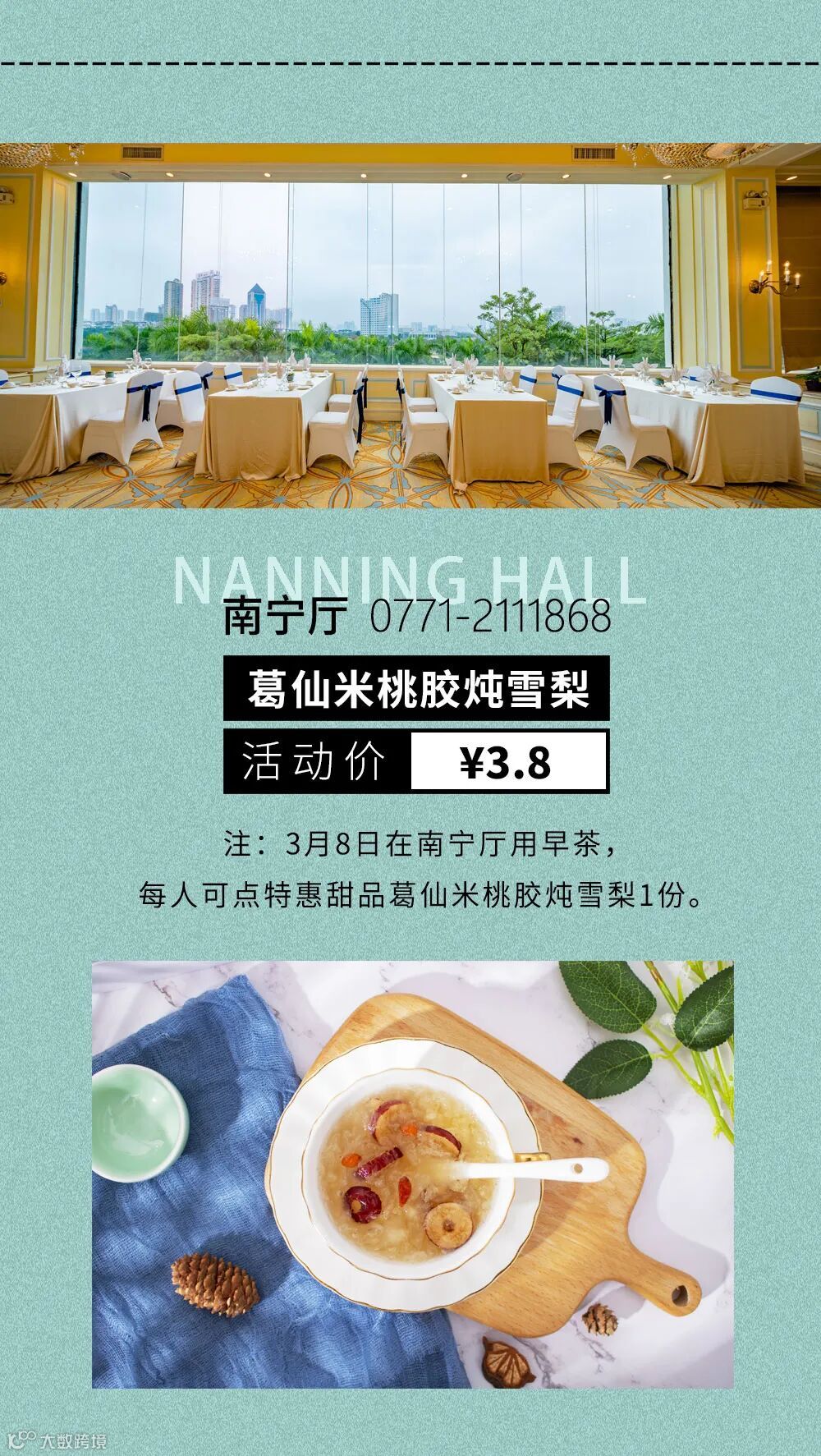 导读:3.8女神节当天到店用餐即可参与活动【西餐厅】①创意手工团扇DIY ②集赞赢取自助餐券③参与互动游戏赢取精美礼品!【南宁厅】可享3.8元特惠甜品1份!